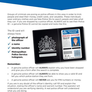 Following on from fake warrants being used to enter properties in the Abbeywood Area. we've had lots of enquires about real ones. This is specific to Met warrant cards, example below with fake as well.